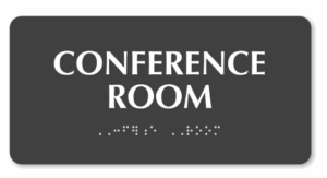 Signs identifying permanent rooms and spaces require both raised characters and Braille. A “permanent” space is any room or area that will consistently serve the same function, like conference rooms, restrooms, offices, stairwells, and exits.